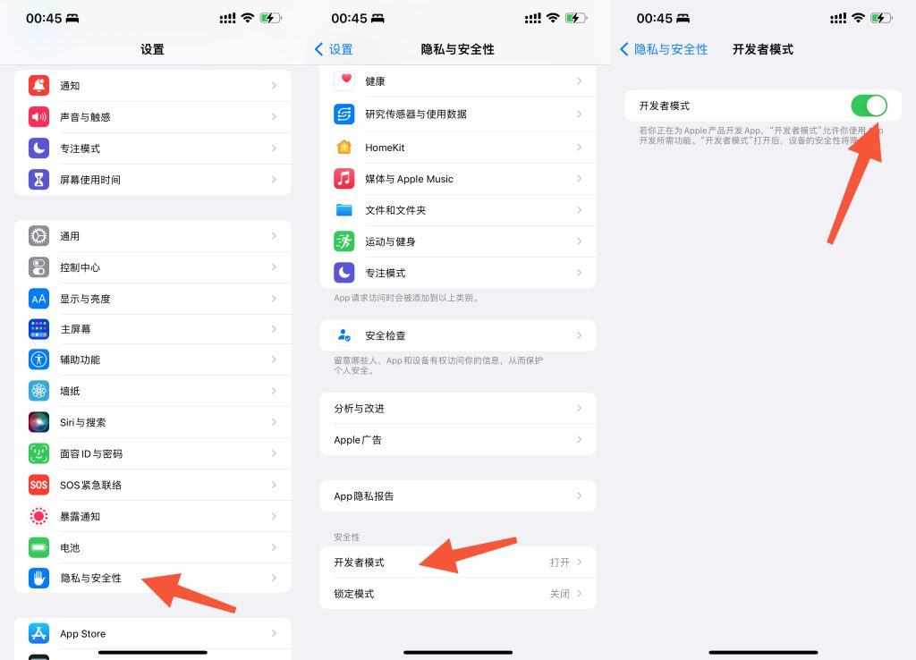 iOS16及以上系统首次安装第三方App需要打开【开发者模式】(不是iOS16以及打开过的请忽略这步)