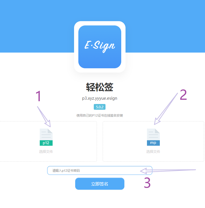 并且输入p12的密码,点击「立即签名」,签完名安装即可