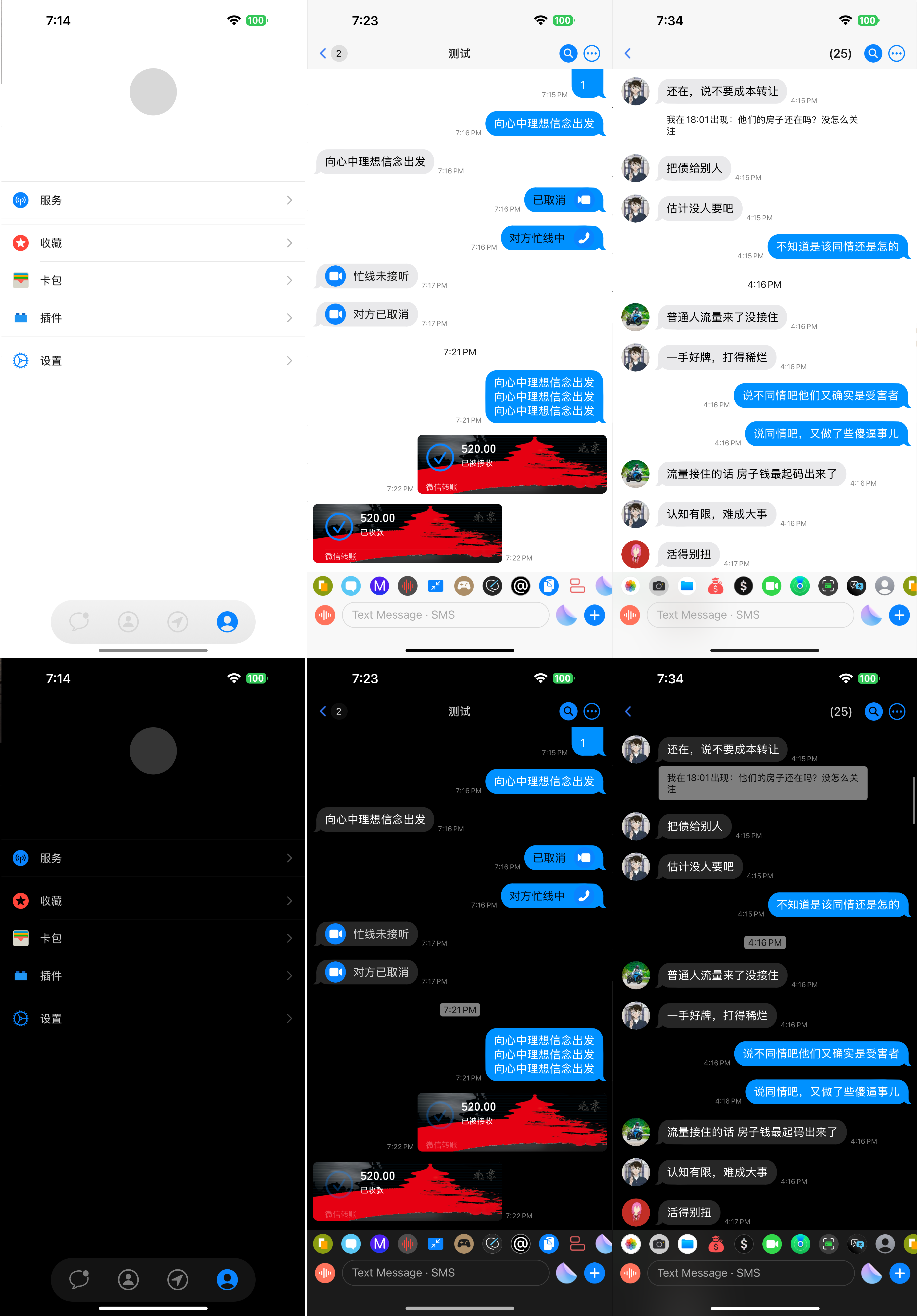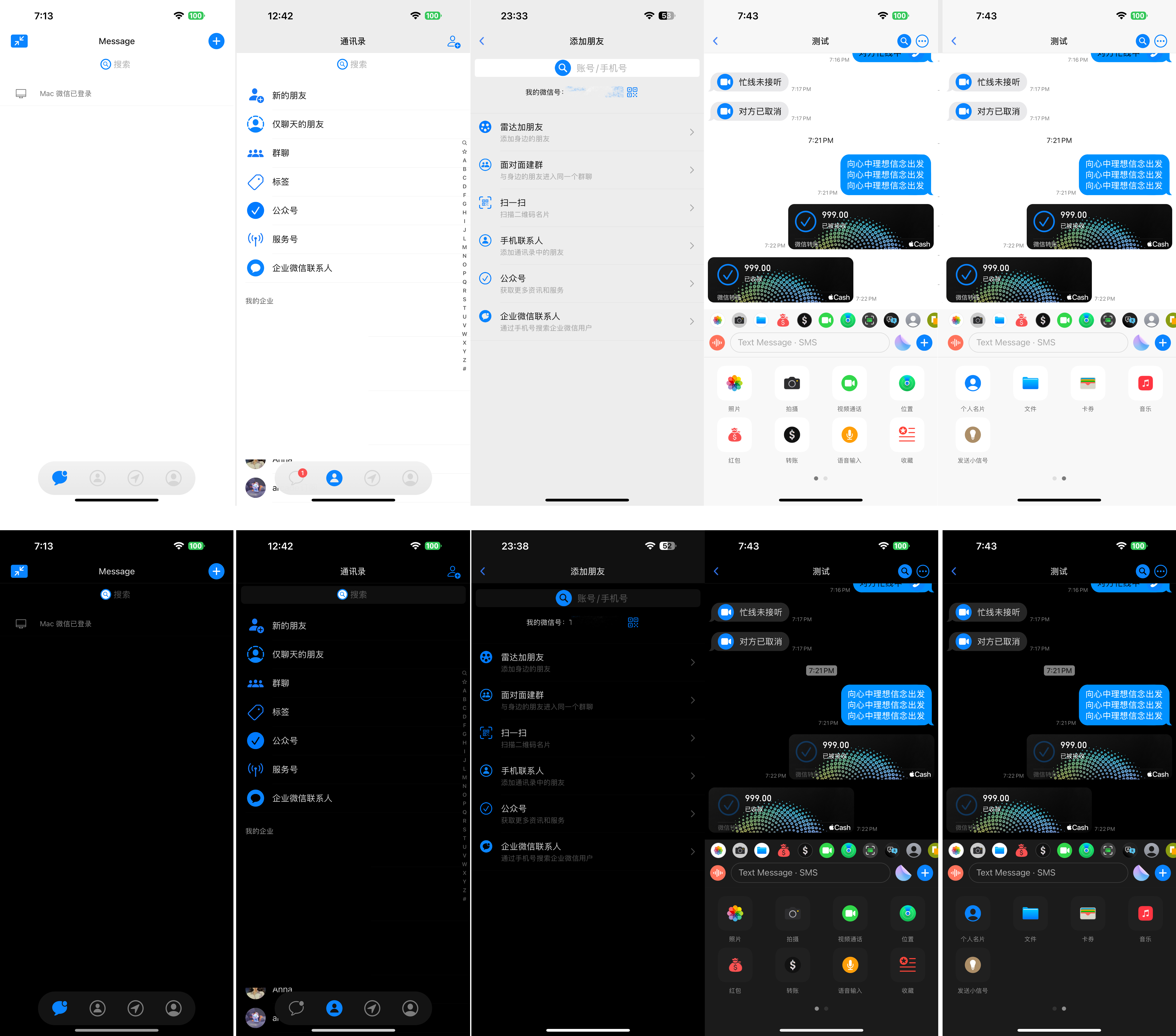 iMessage风,以蓝色为主调。简约干净。✅ 深色纯 OLED 模式(节省电量)