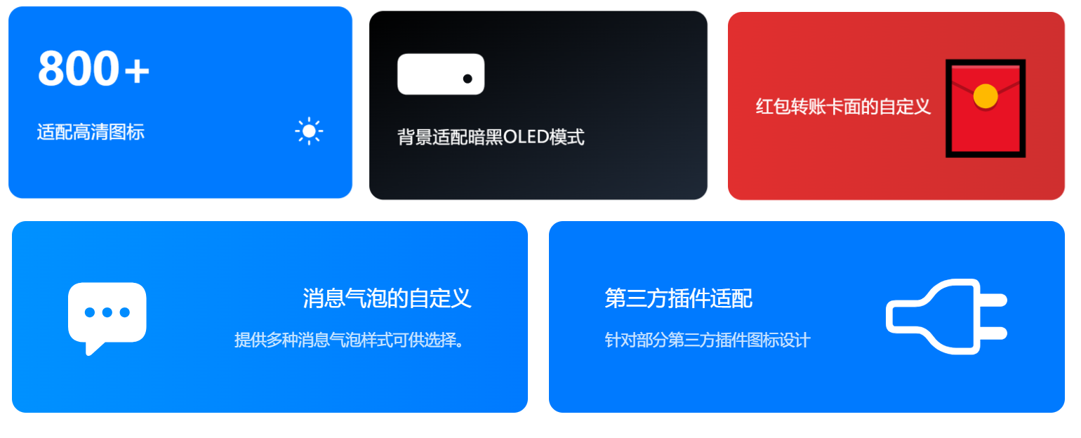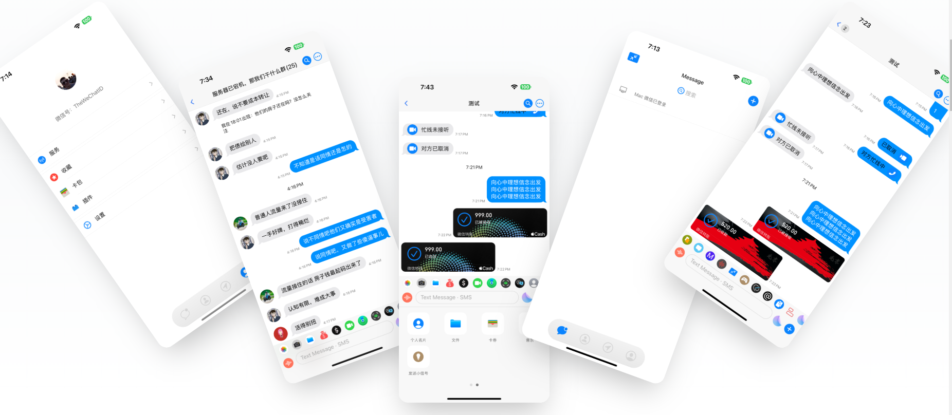 一款基于 Apple 系统图标 的类 iMessage 风格 WeChat 主题,为 Themebox 插件专门适配,旨在提供简约而高效的视觉体验。主题覆盖了 iMessage 常见图标,并对部分 WeChat 第三方插件图标进行了专门设计和优化。支持浅色模式和深色 OLED 模式自由切换,整体风格以蓝色为主调,保持一二级界面干净的同时,为功能菜单增加色彩点缀兼具简洁与实用。主题文件包含完整的界面适配及多种红包、转账气泡样式,并附带可供参考的 Sketch 项目文件。持续更新,欢迎参与协作,共同完善主题设计。